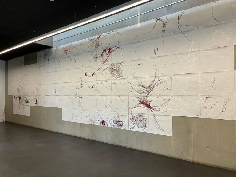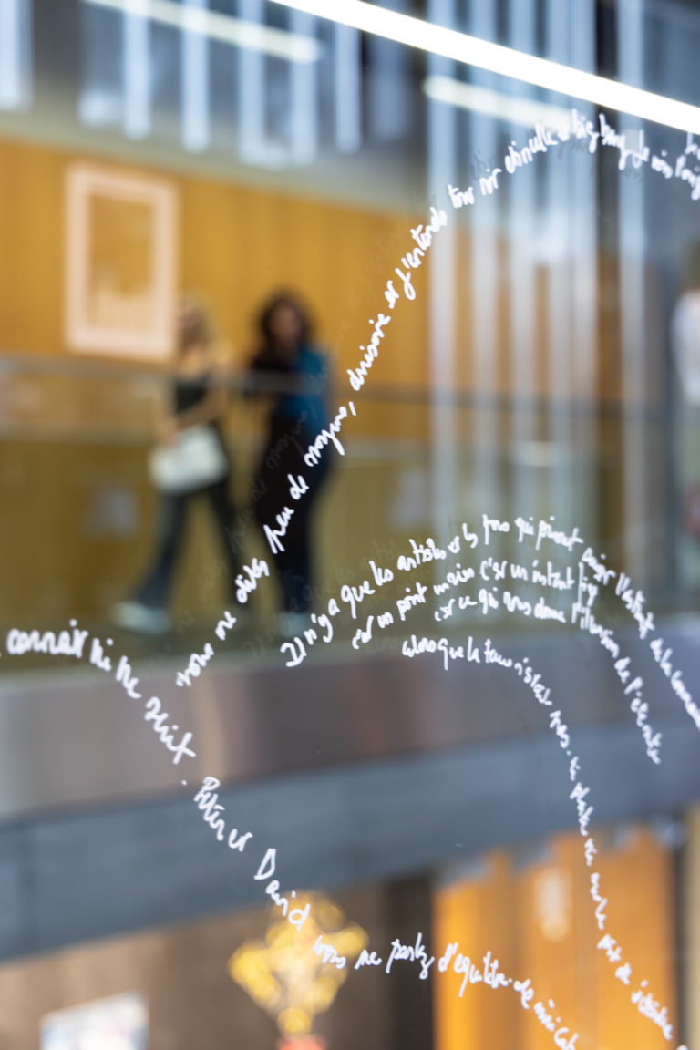 On the morning of the opening, a poetic conversation will be written on the glass surfaces of the art space — my threads of thought in dialogue with the other artists in the exhibition.