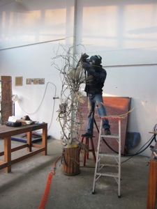 Le totem lui a prit tournure, il s'est paré de ses masques il cherche encore le mouvement vers le ciel, nous avons, entre deux lettres, soudé (enfin Ali et Ti) coupé abrasé et ressoudé, demain, demain c'est sûr il s'élancera