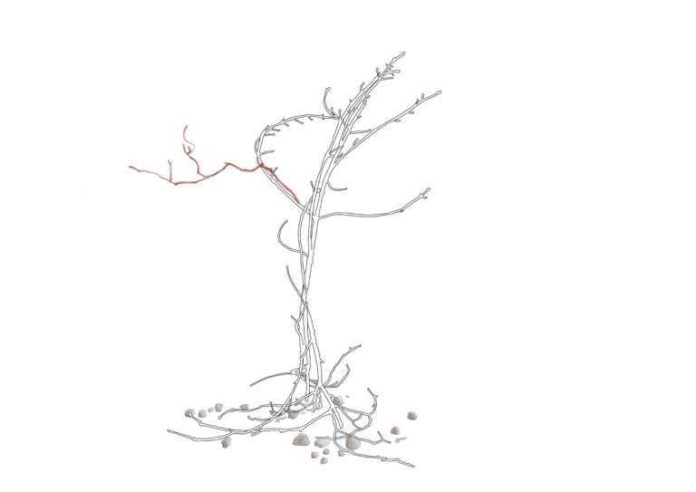 Mon projet s’inscrit dans Futur Exhaussé et se déploie autour de L’enterrement de l’Arbre de la Mémoire. L’arbre de la mémoire est l’un des six arbres généalogiques de mon installation Lignes de vie (2009), qui retraçait les étapes symboliques de l’existence humaine : la naissance, la société, l’exil, la mémoire, la liberté et le divin. Cet arbre est né d’un geste intime et réparateur, offrir une sépulture symbolique aux membres de ma famille dont on ne parlait pas, assassinés pendant la Shoah. Aujourd’hui il devient matière à transformation.