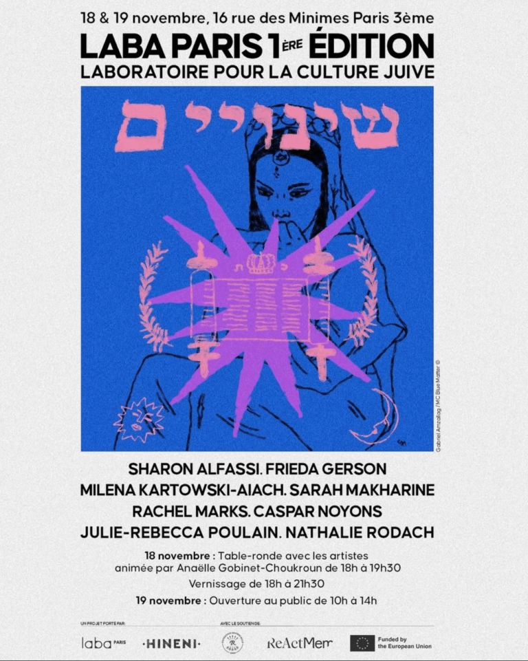 La première édition de LABA Paris s’achève. La restitution aura lieu les 18 et 19 novembre à Paris, après plusieurs mois d’échanges intenses avec des artistes aussi singuliers que Sarah Makharine, Milena Kartowski-Aiach, Rachel Marks, Frieda Guerson, Caspar Noyon, Julie Rebecca Poulain et Sharon Alfassi, ainsi qu’avec les enseignants des textes juifs.