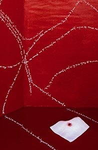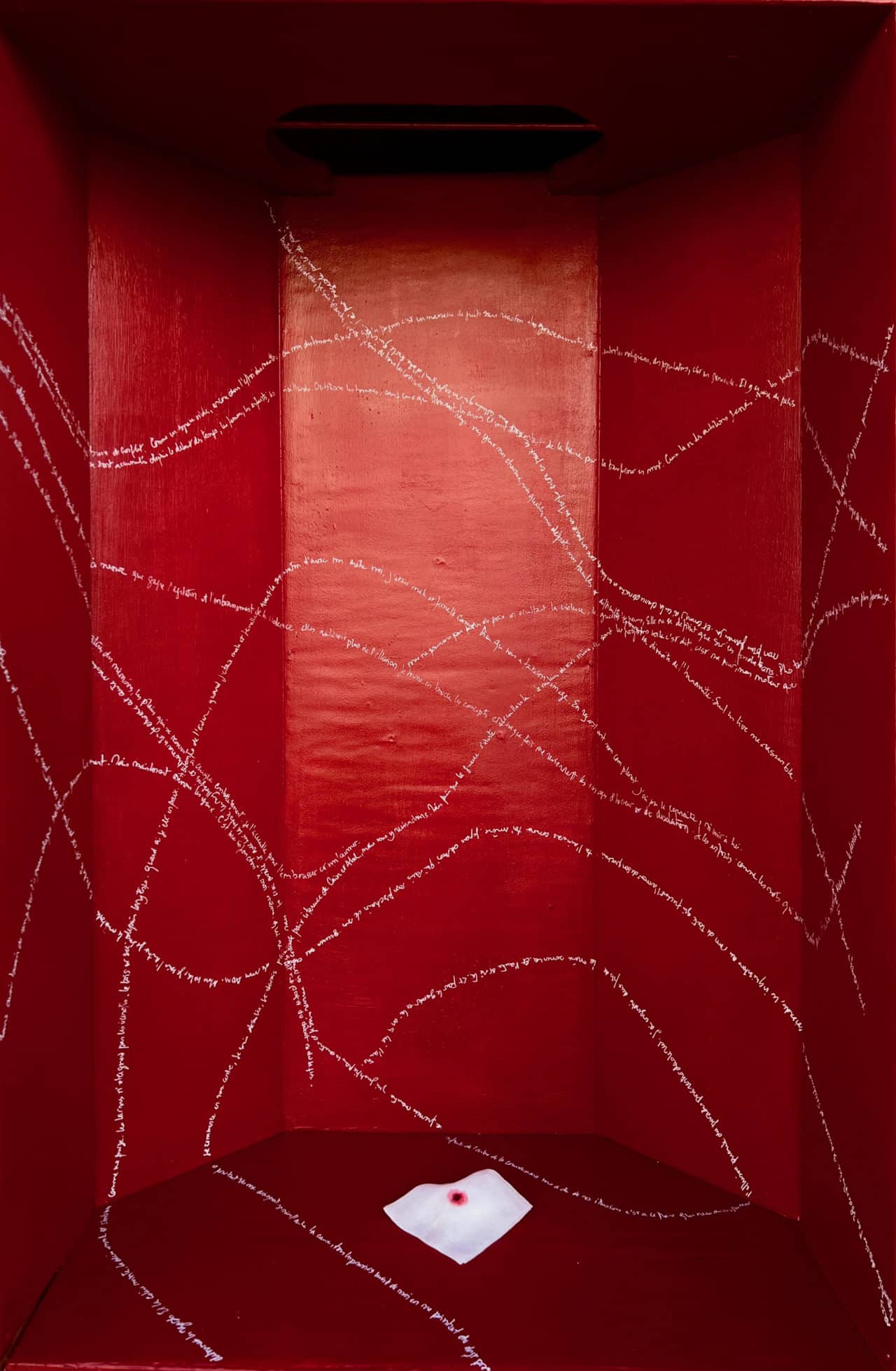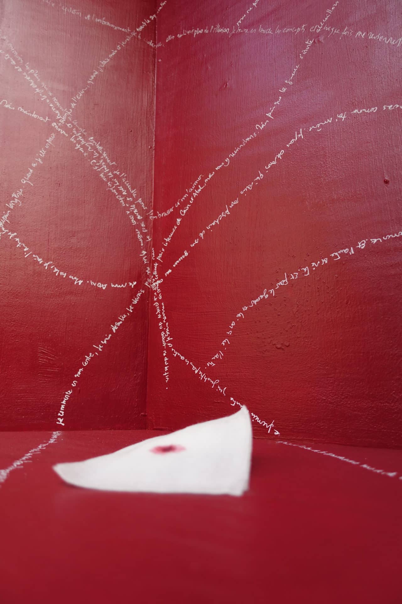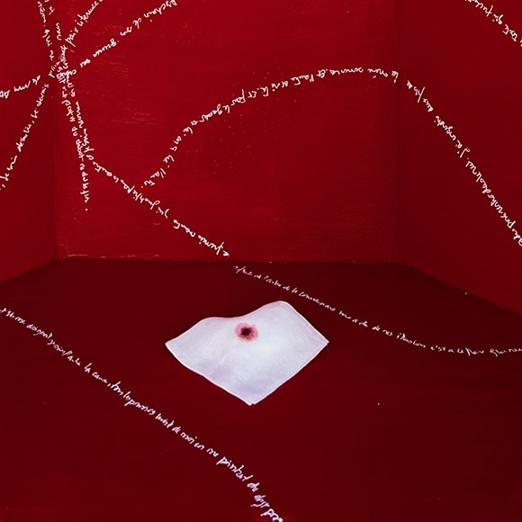 Et c’est cette proposition que je fais ici dans un demi mètre carré, le volume d’un thorax, nos tripes à l’air, nos pensées exposées, et au fond, une gaze incongrue. Et une seule goutte de sang qui souille le bon ordonnancement divin.