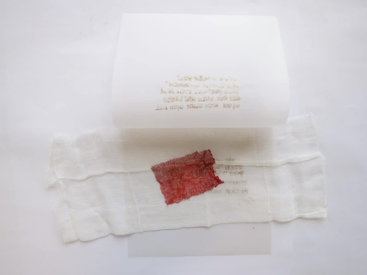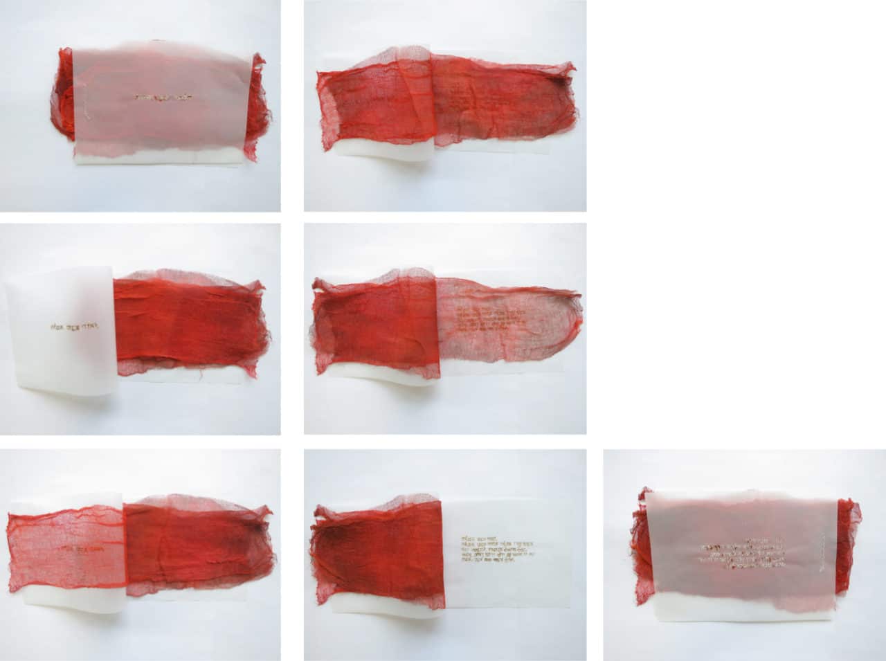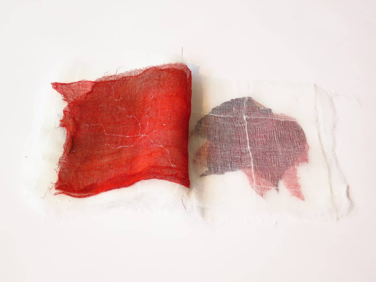 interprétation 1 : 37 pages de gaze, feuilles et encre rouge