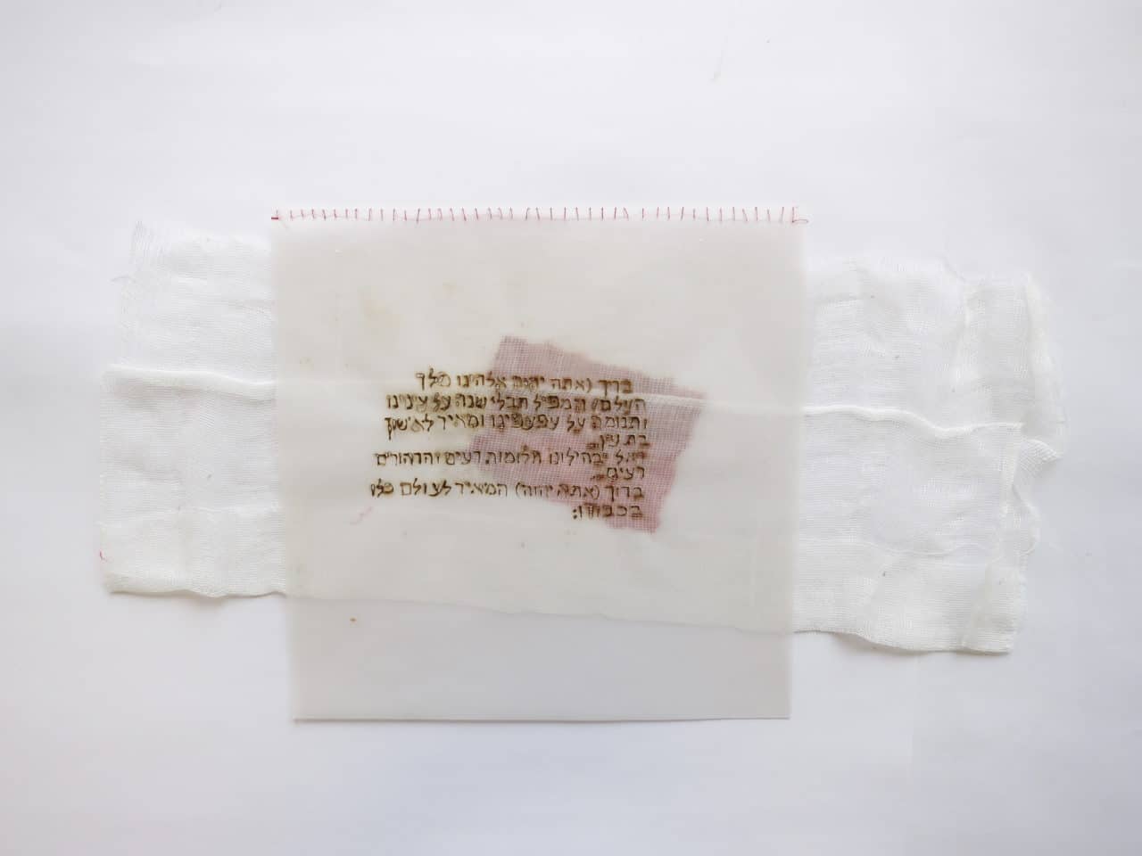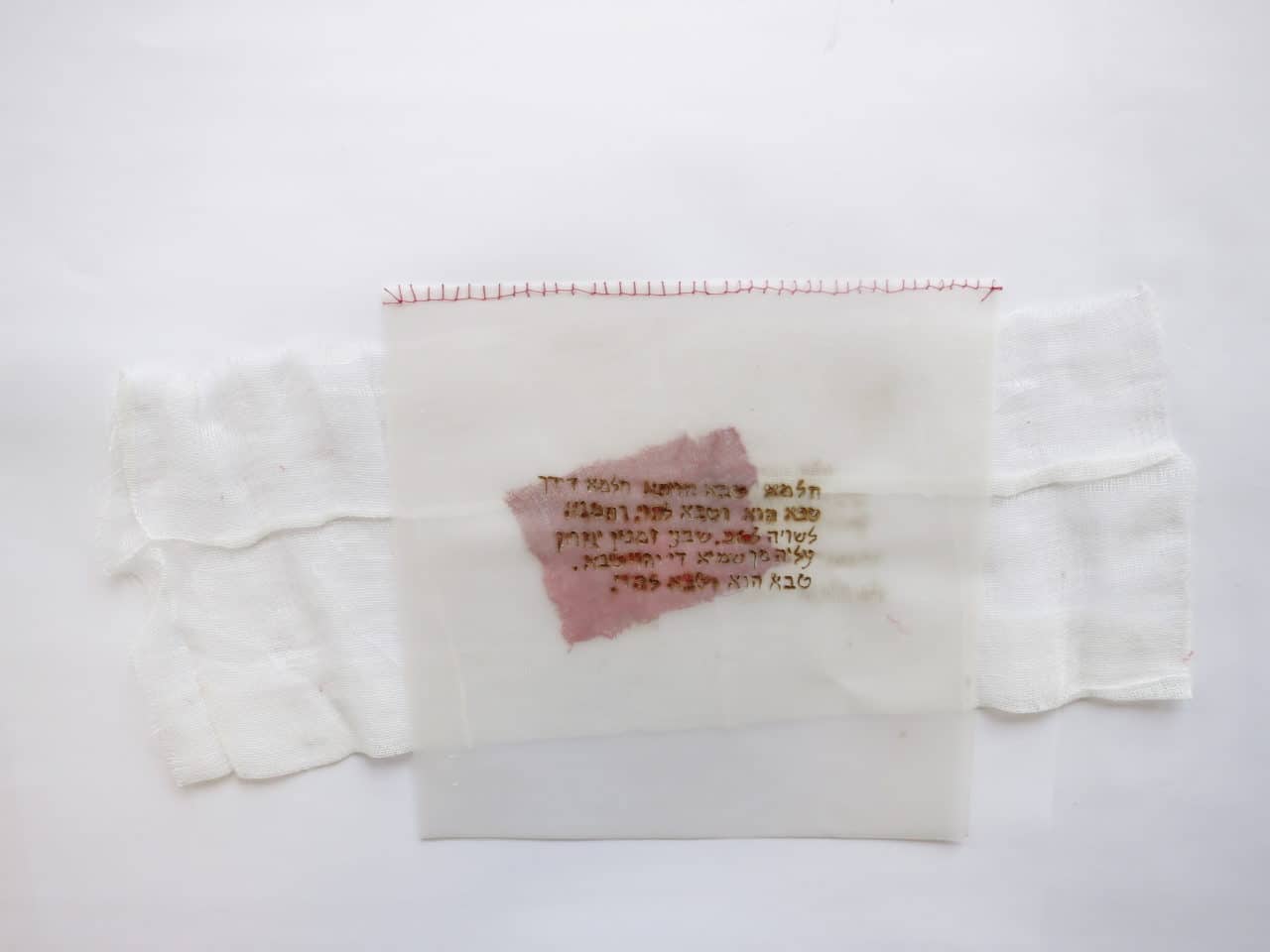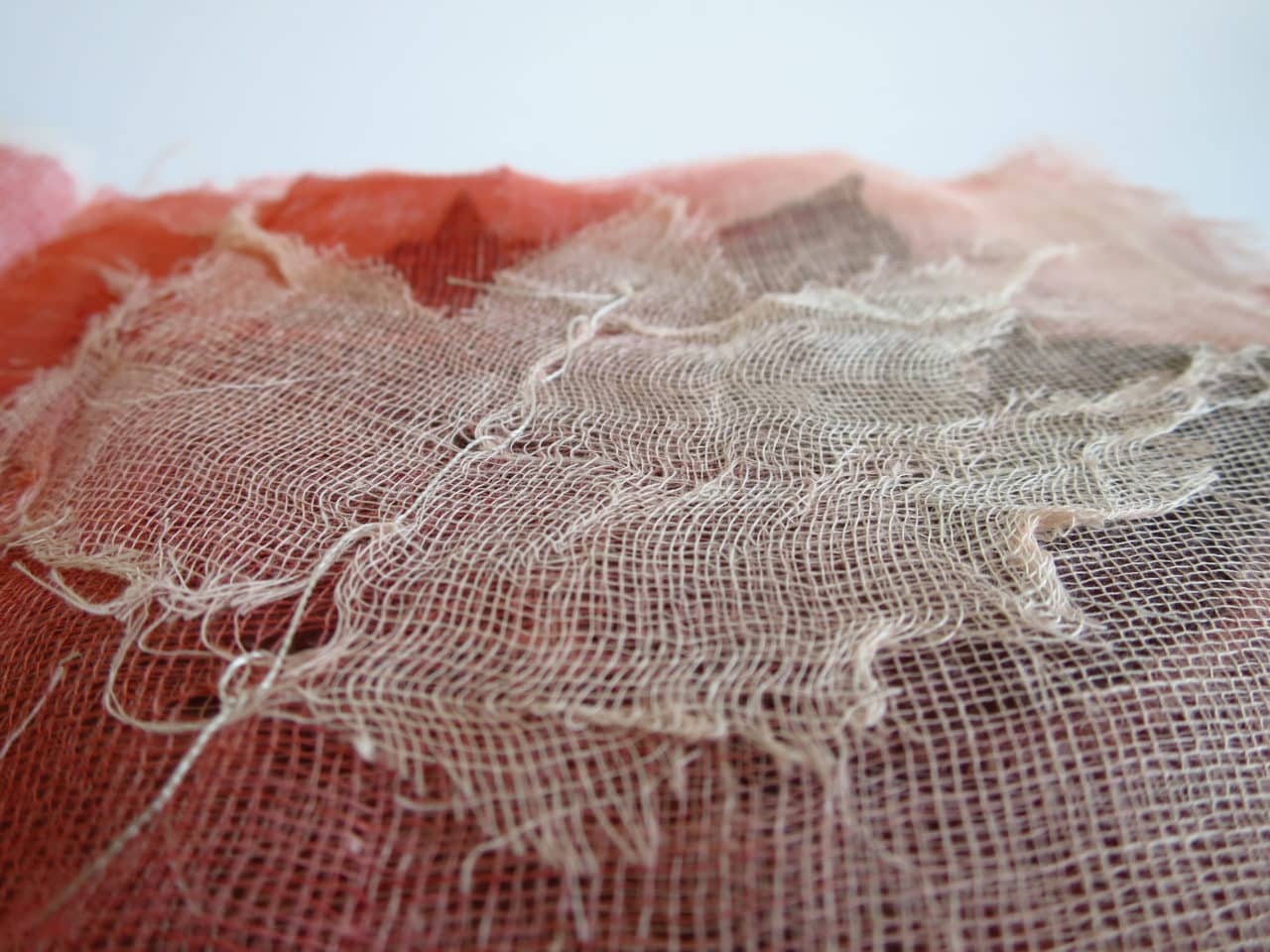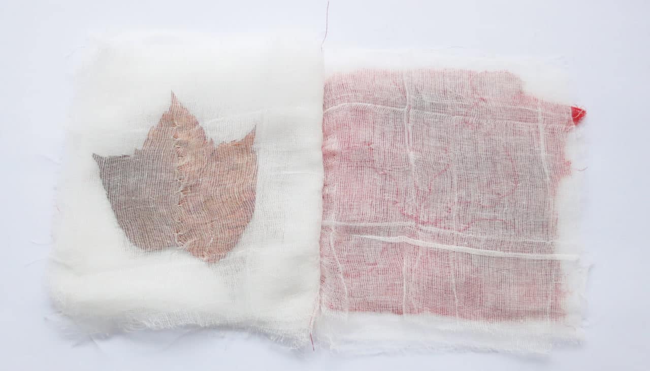 interprétation 1 : 37 pages de gaze, feuilles et encre rouge