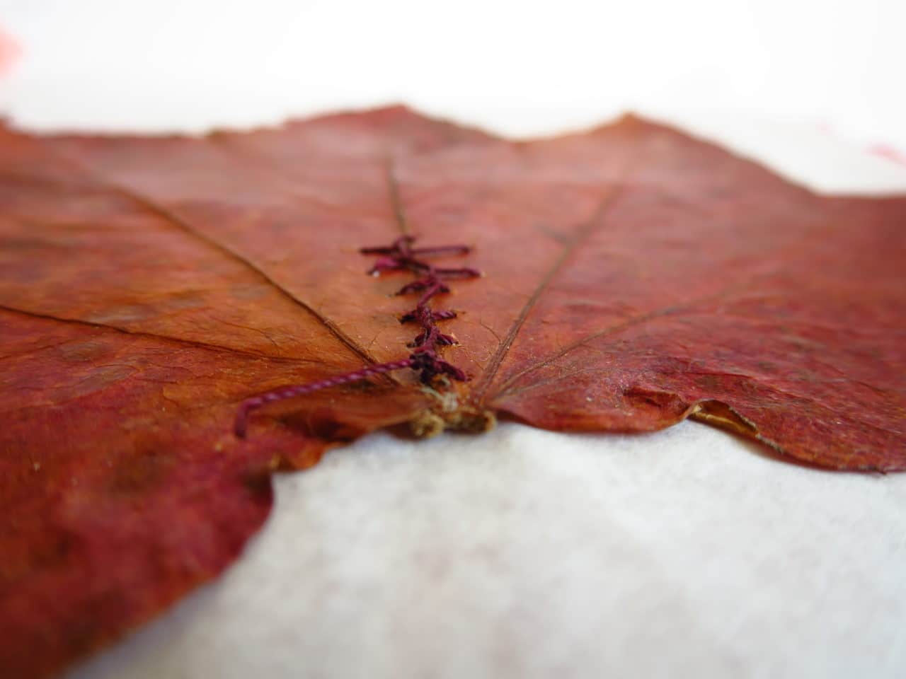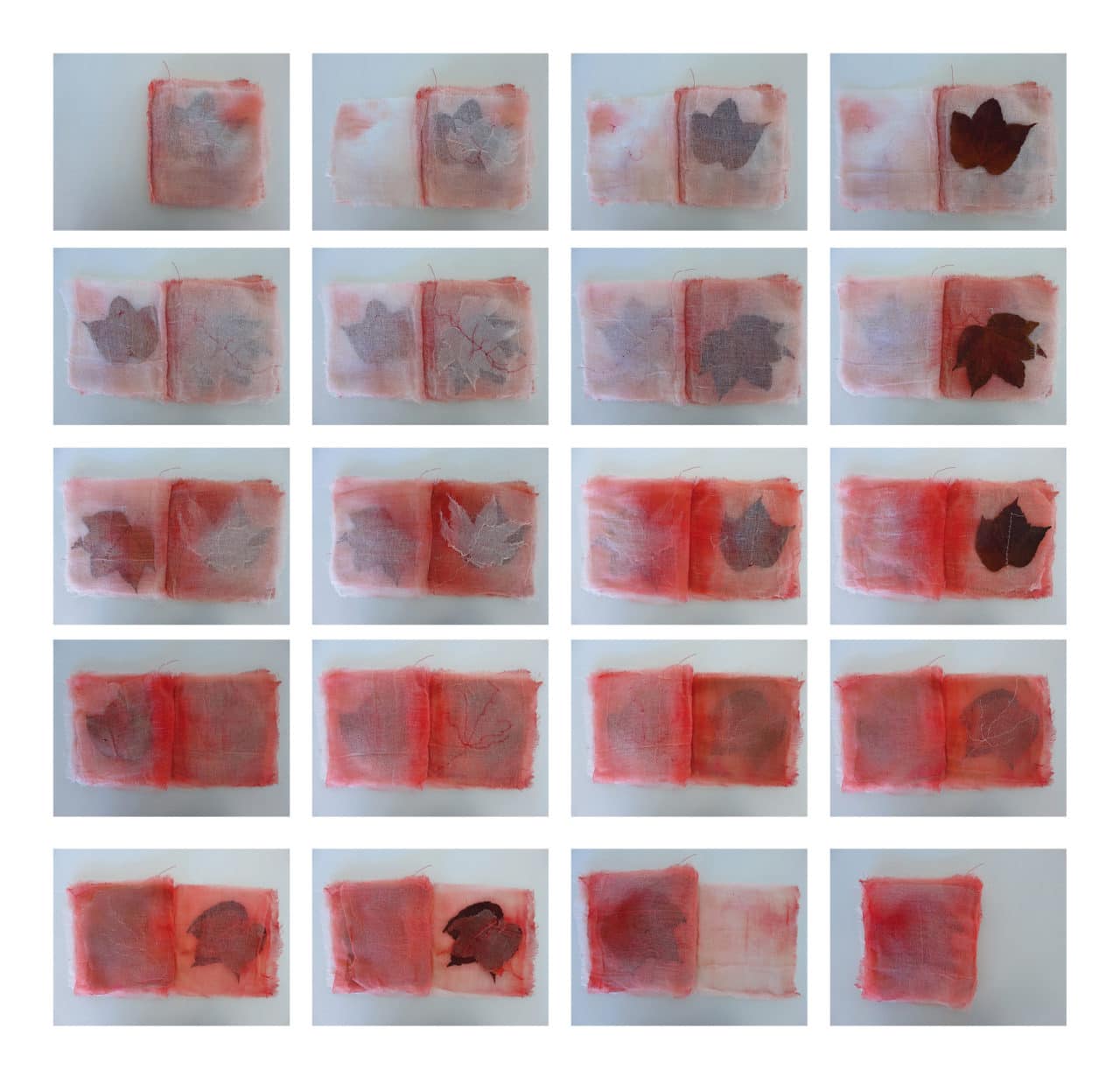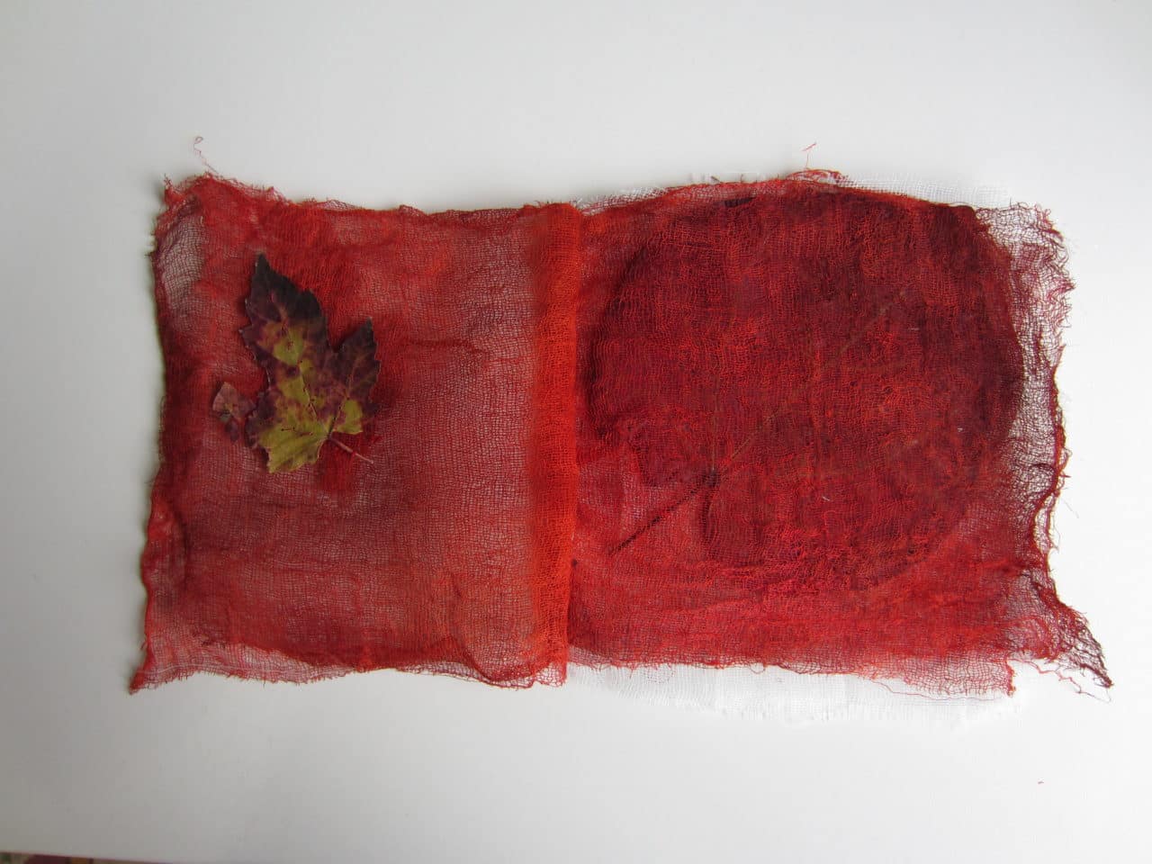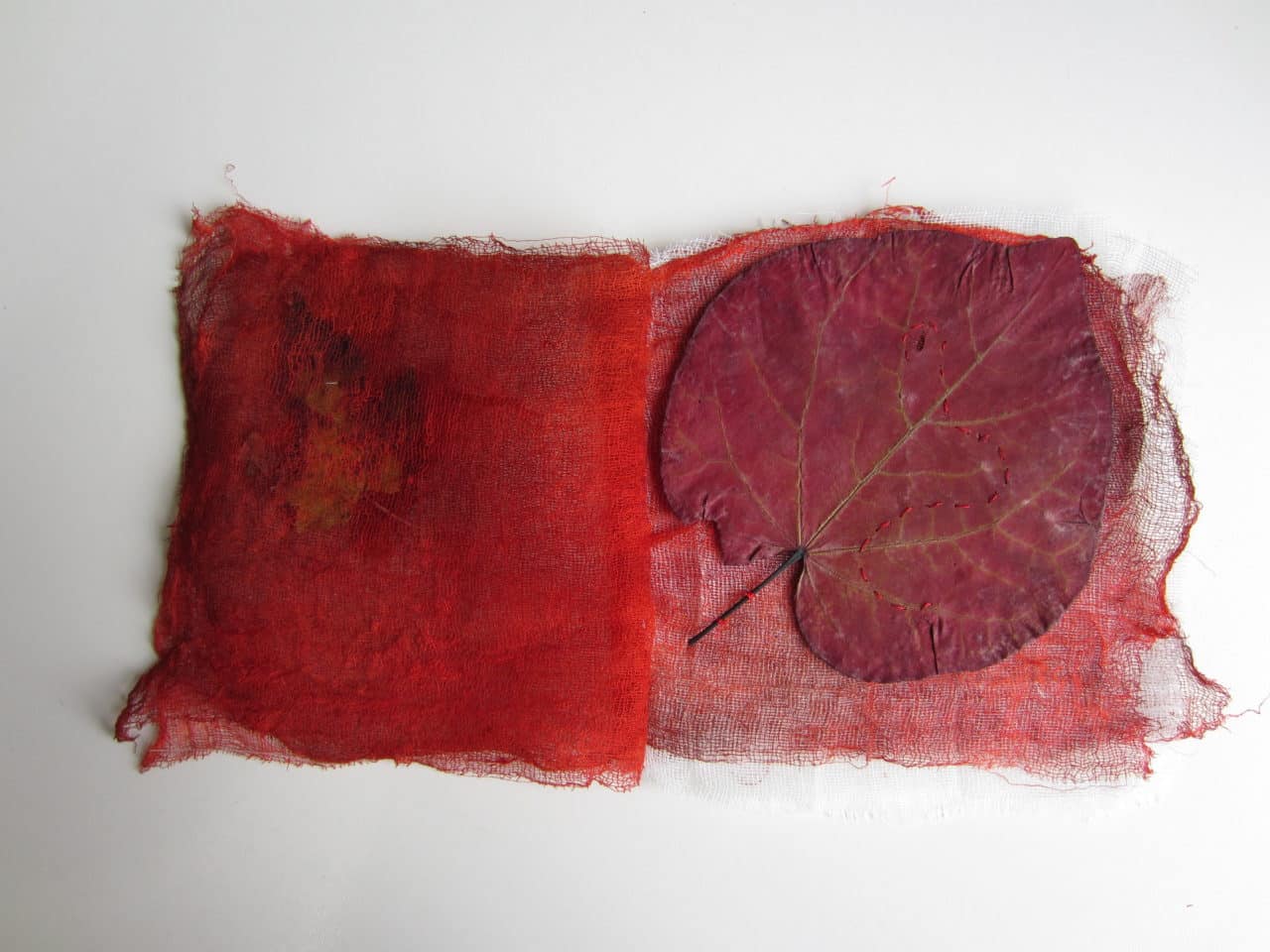 interprétation 2 : 37 pages de gaze, feuilles, encre rouge et vin
