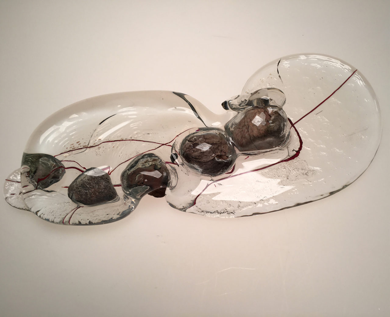2016 - Verre, fil rouge et pierres 5.5 x 19.8 x 38.5 cm
